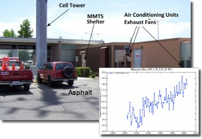 这些不合格的气象站的测量数据多数是偏向暖化一边的。例如,位于加州Orland的一个合格气象站,100年以来没有搬迁过,原始温度数据显示100年来气温反而在下降。